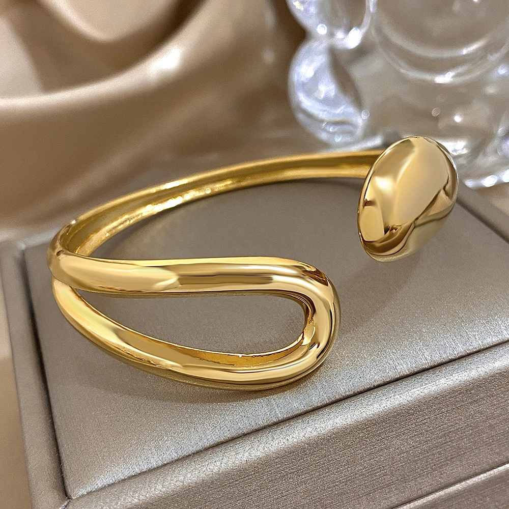 Le bracelet en acier inoxydable asymétrique est une pièce unique qui allie élégance et modernité. Avec son design innovant, il se distingue par un côté plein et un autre évidé, créant un jeu de lumière fascinant qui attire tous les regards. Disponible en couleur or, ce bracelet s’adapte à toutes les tenues, allant des plus décontractées aux plus habillées.