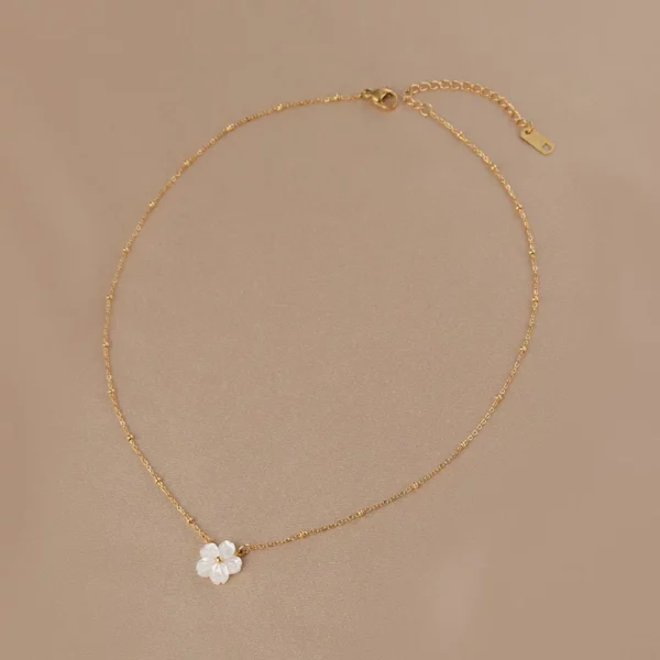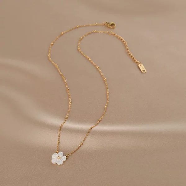 Découvrez le collier en acier inoxydable fleur, une pièce unique qui saura sublimer votre style. Avec son éclat doré et son pendentif délicat en forme de fleur blanche, ce collier est bien plus qu’un simple accessoire. Il incarne l’harmonie parfaite entre élégance et modernité, tout en ajoutant une touche de fraîcheur à votre look.